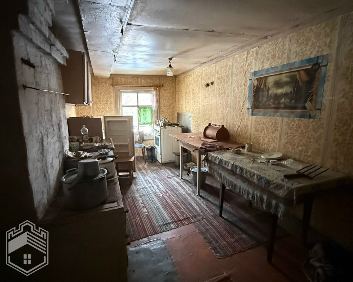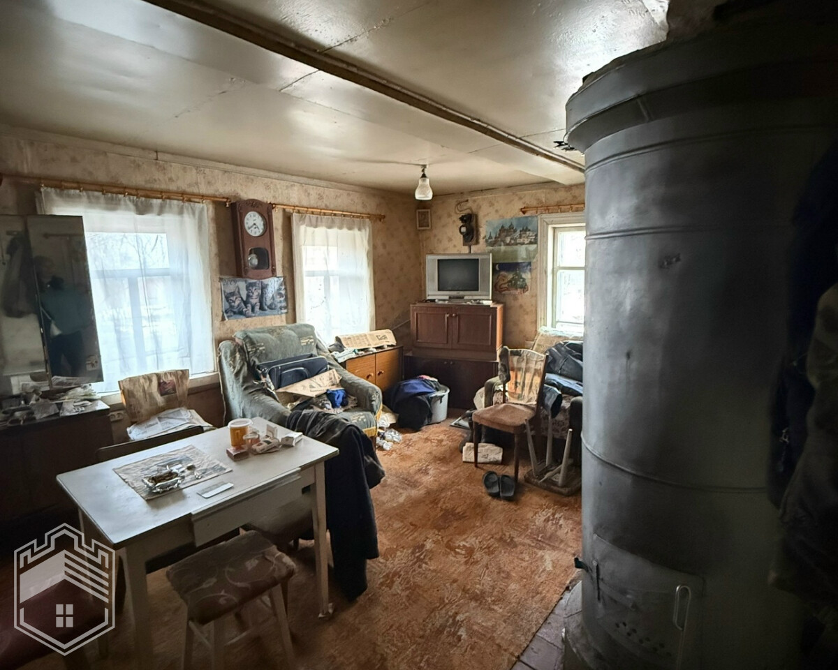 Дом — бревенчатый, 6 на 8 кв.м, 55,8 кв.м, 1960 года постройки. В доме 2 комнаты, кухня, прихожая, две печи. Дом требует ремонта, несколько лет никто не живёт.