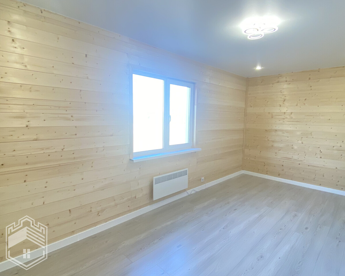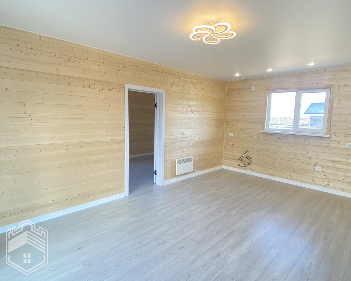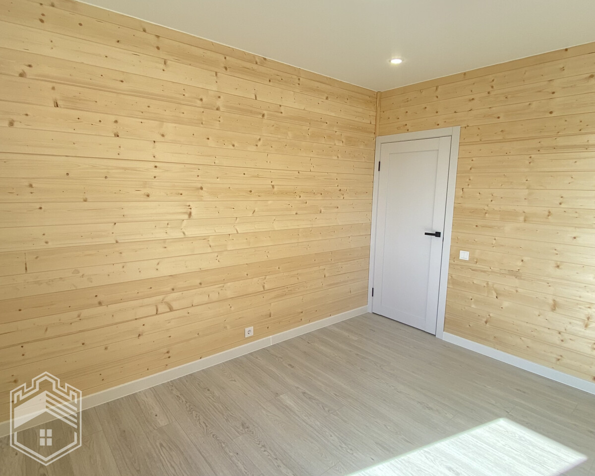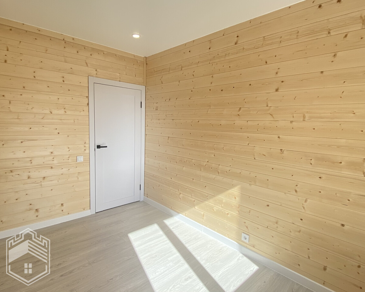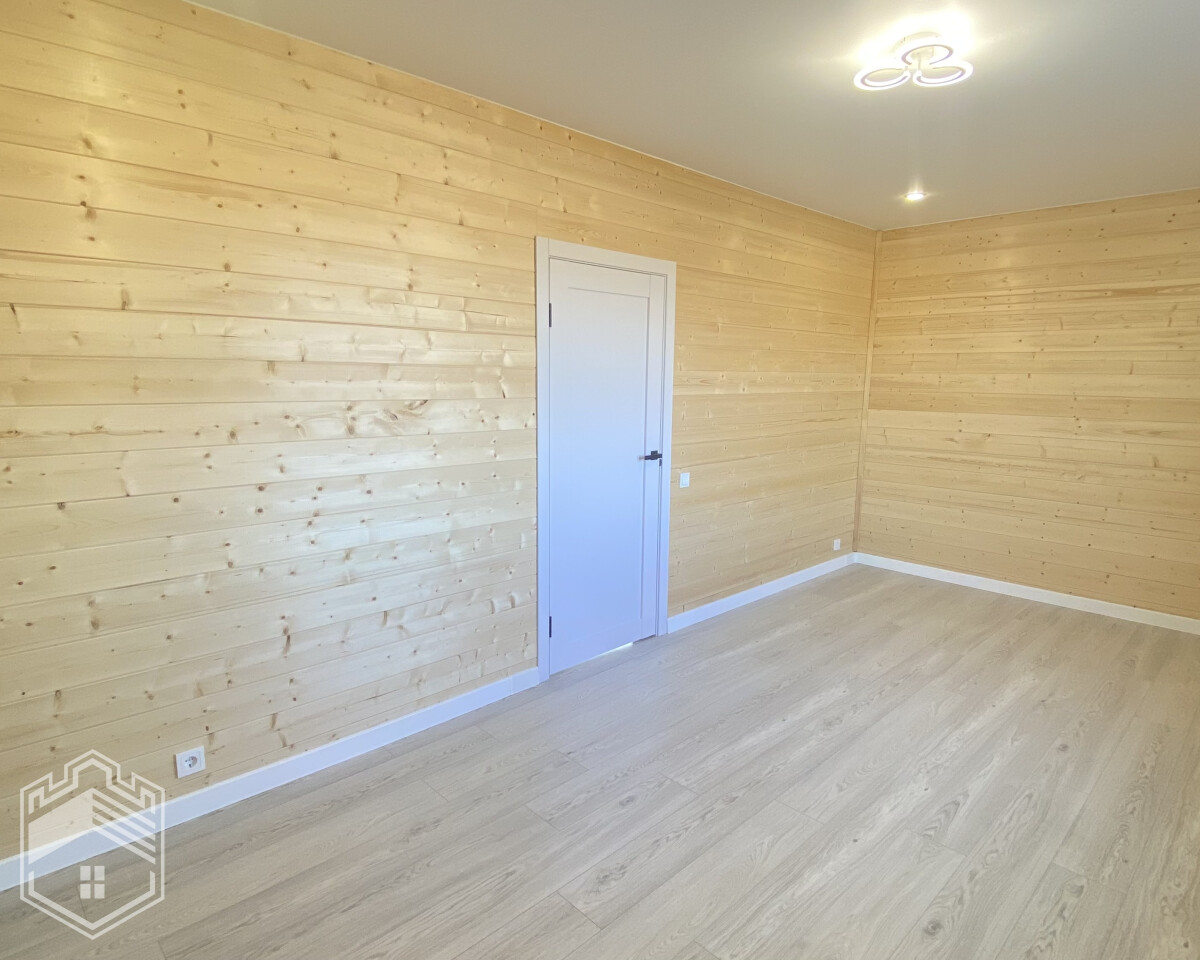 — Отделка: на пол уложен ламинат, на стенах — вагонка штиль, натяжной потолок, межкомнатные двери Экошпон, в с/у кафель, установлены унитаз, ванна, раковина, зеркало и полотенцесушитель.