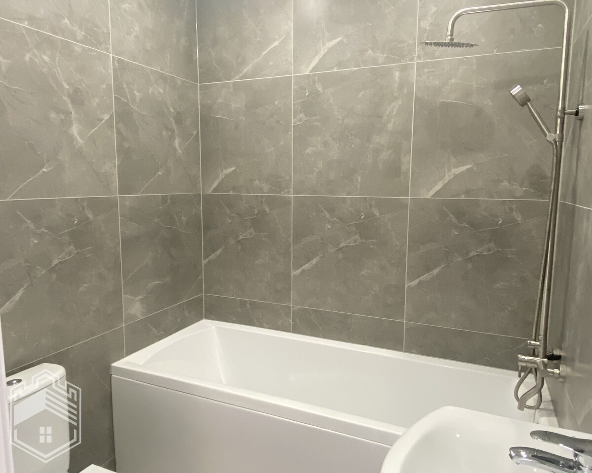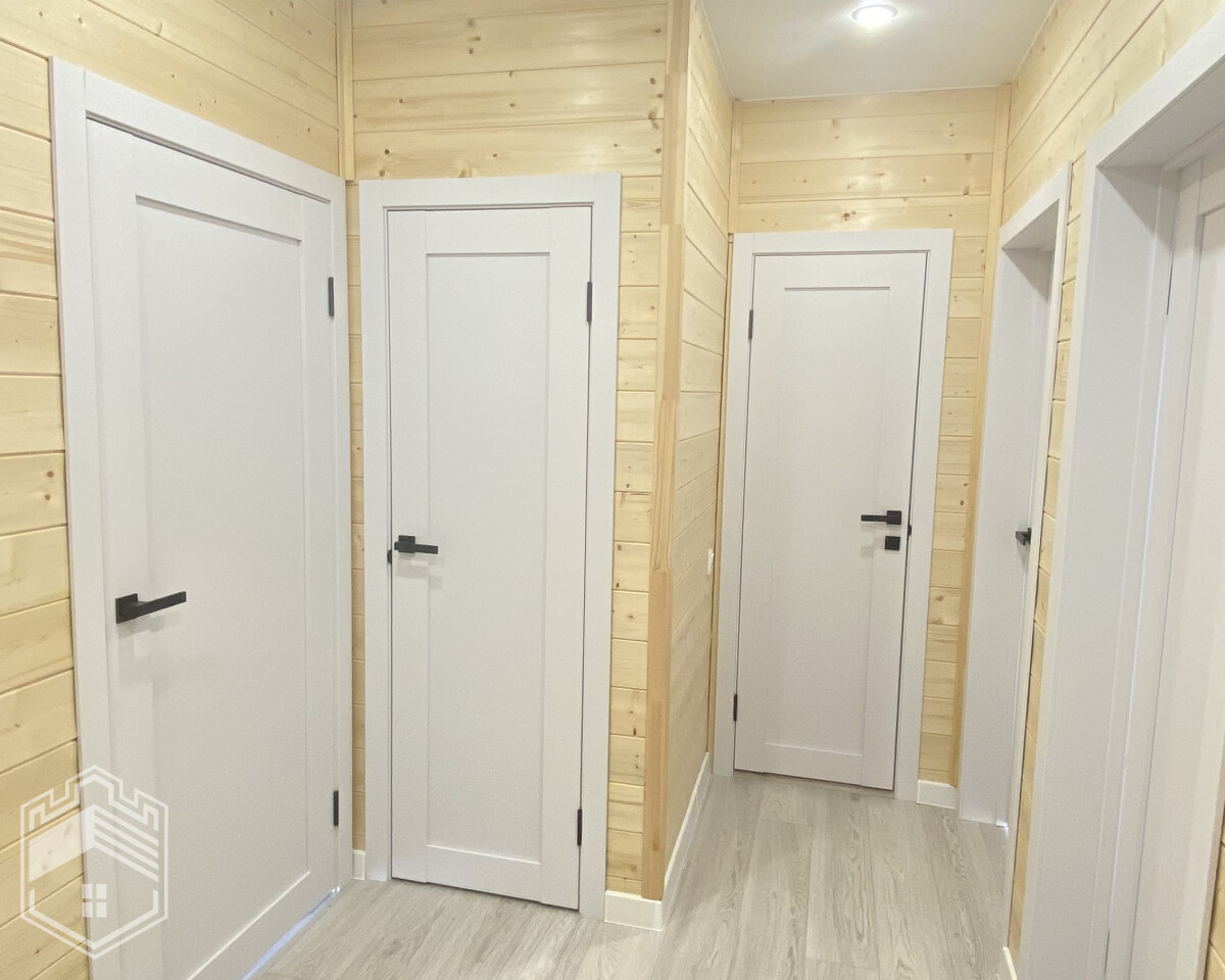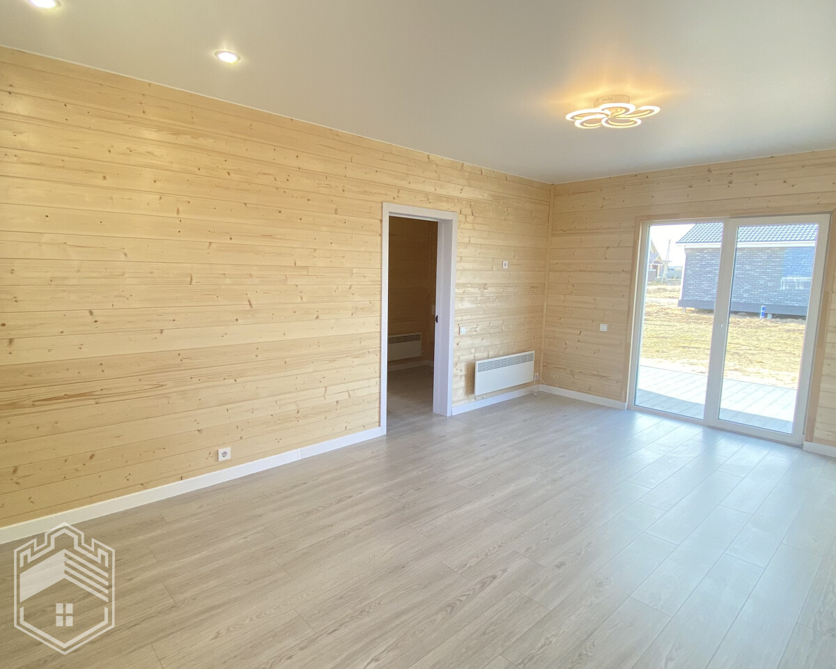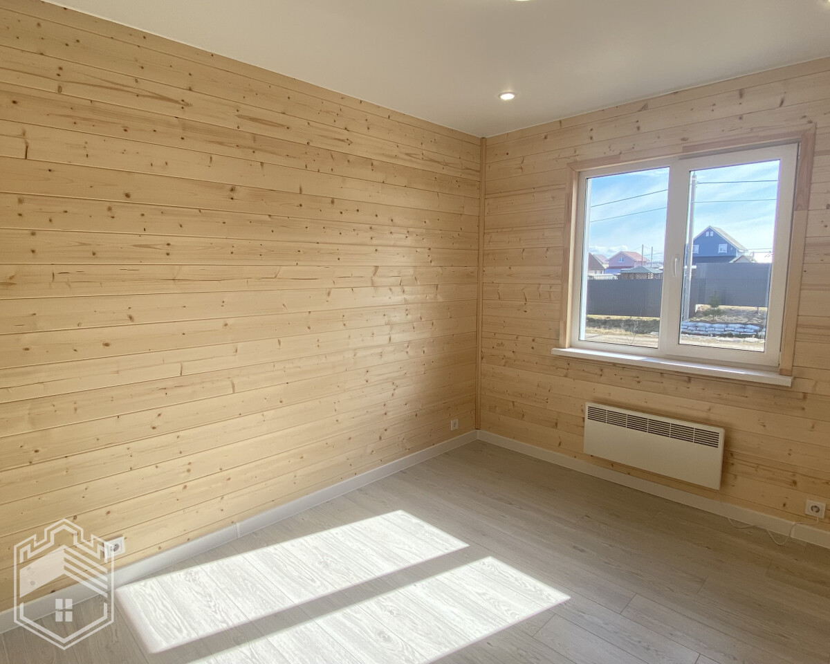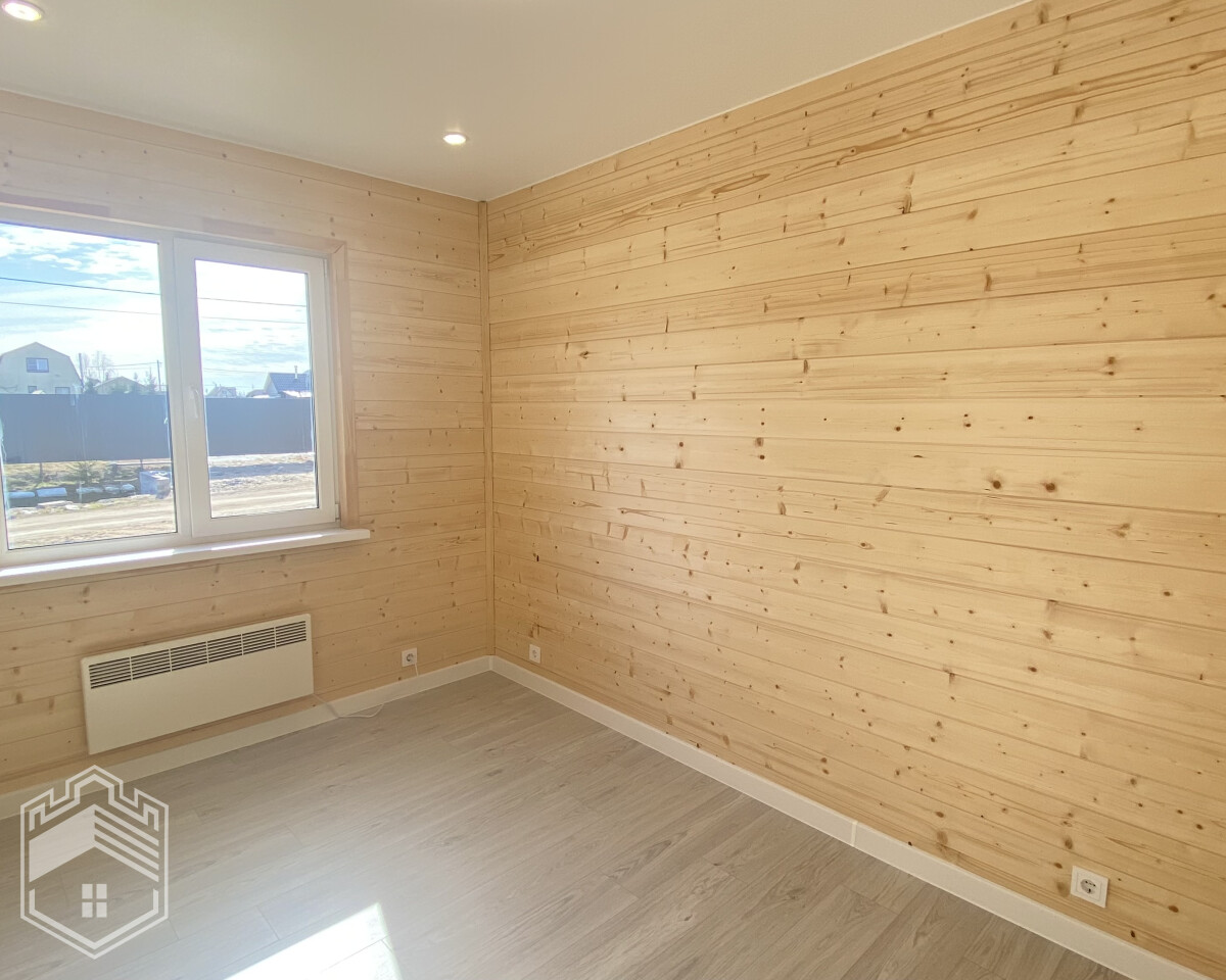 — Отделка: на пол уложен ламинат, на стенах — вагонка штиль, натяжной потолок, межкомнатные двери Экошпон, в с/у кафель, установлены унитаз, ванна, раковина, зеркало и полотенцесушитель.