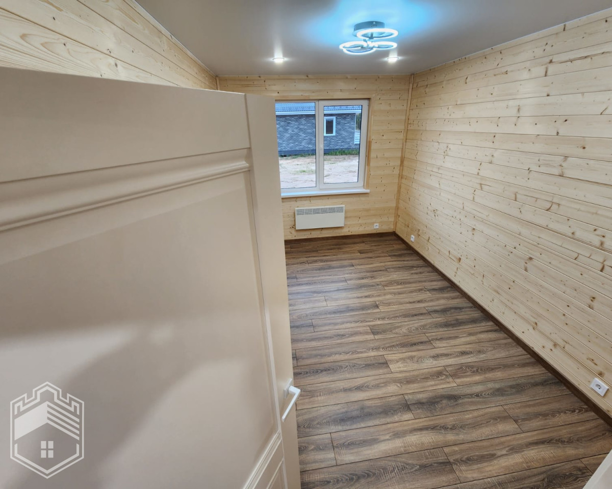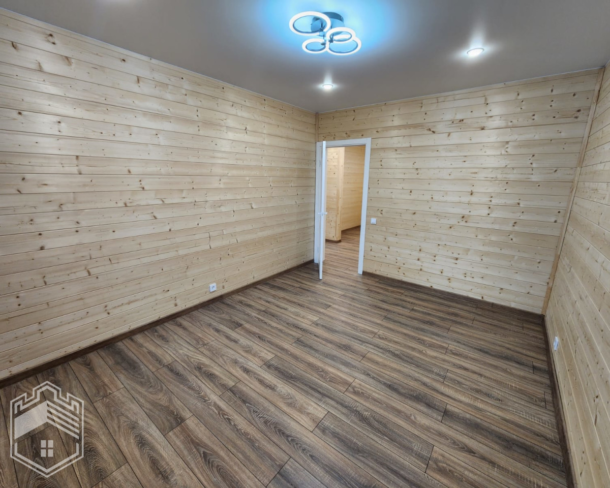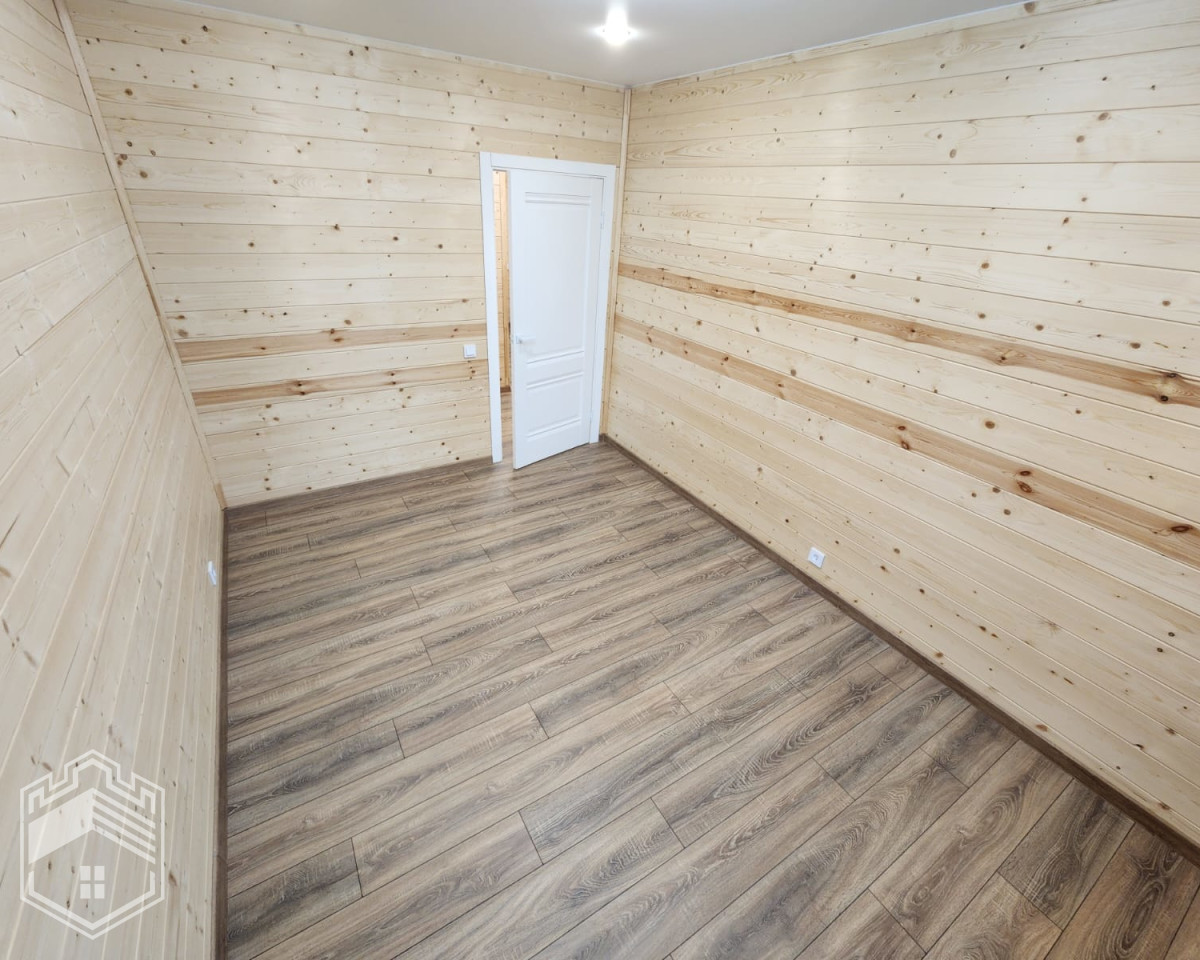 — Отделка: на пол уложен ламинат, на стенах — вагонка штиль, натяжной потолок, межкомнатные двери Экошпон, в с/у кафель, установлены унитаз, ванна, раковина, зеркало и полотенцесушитель.