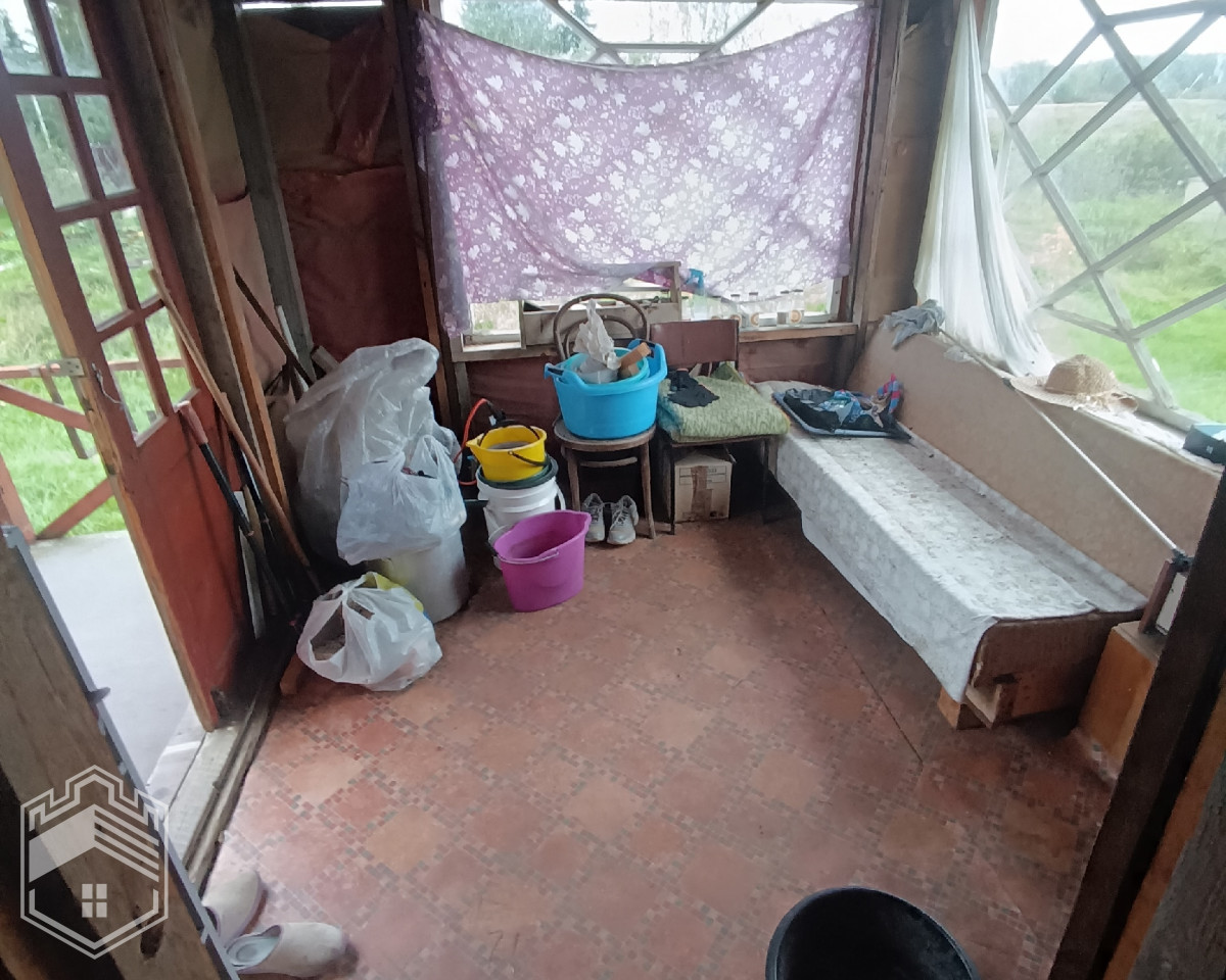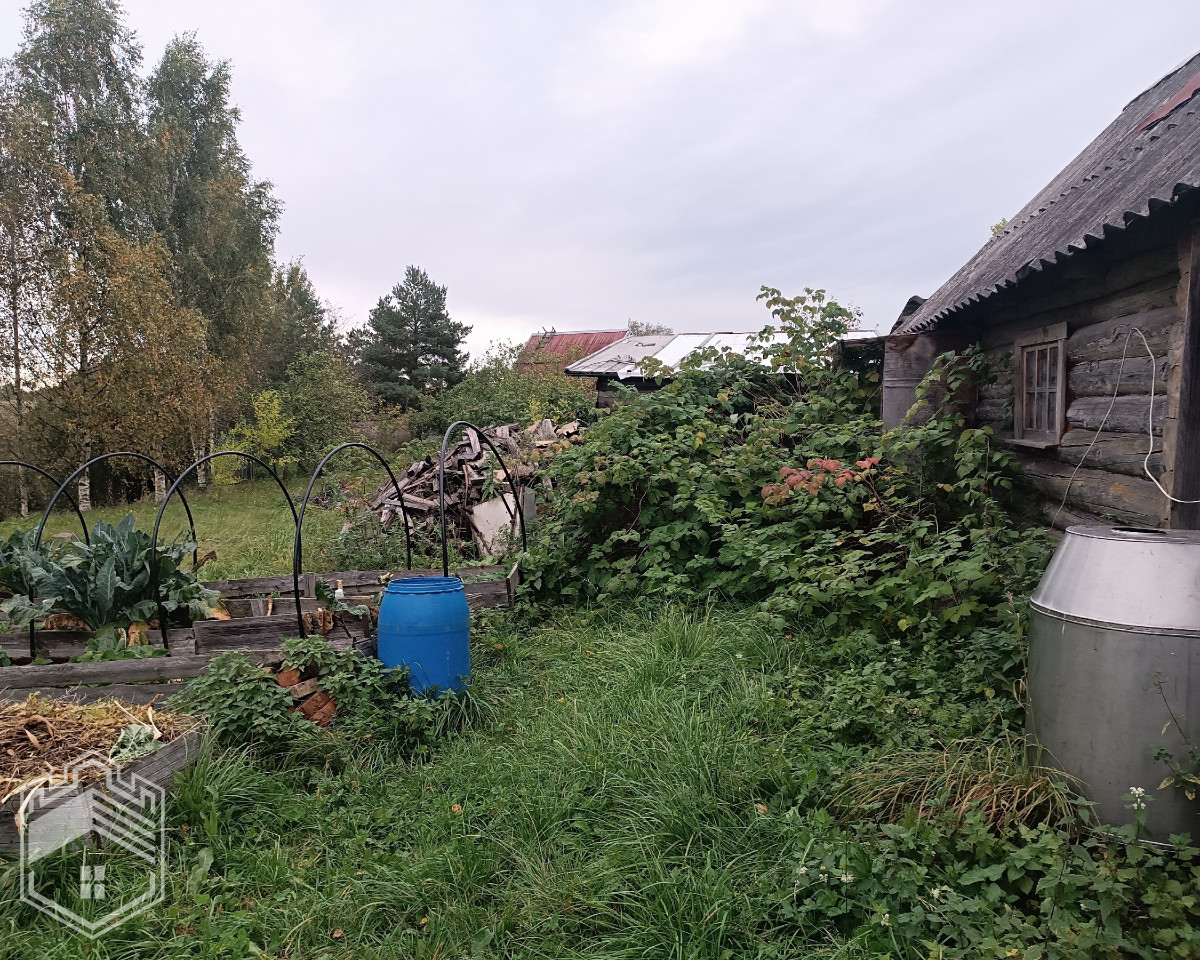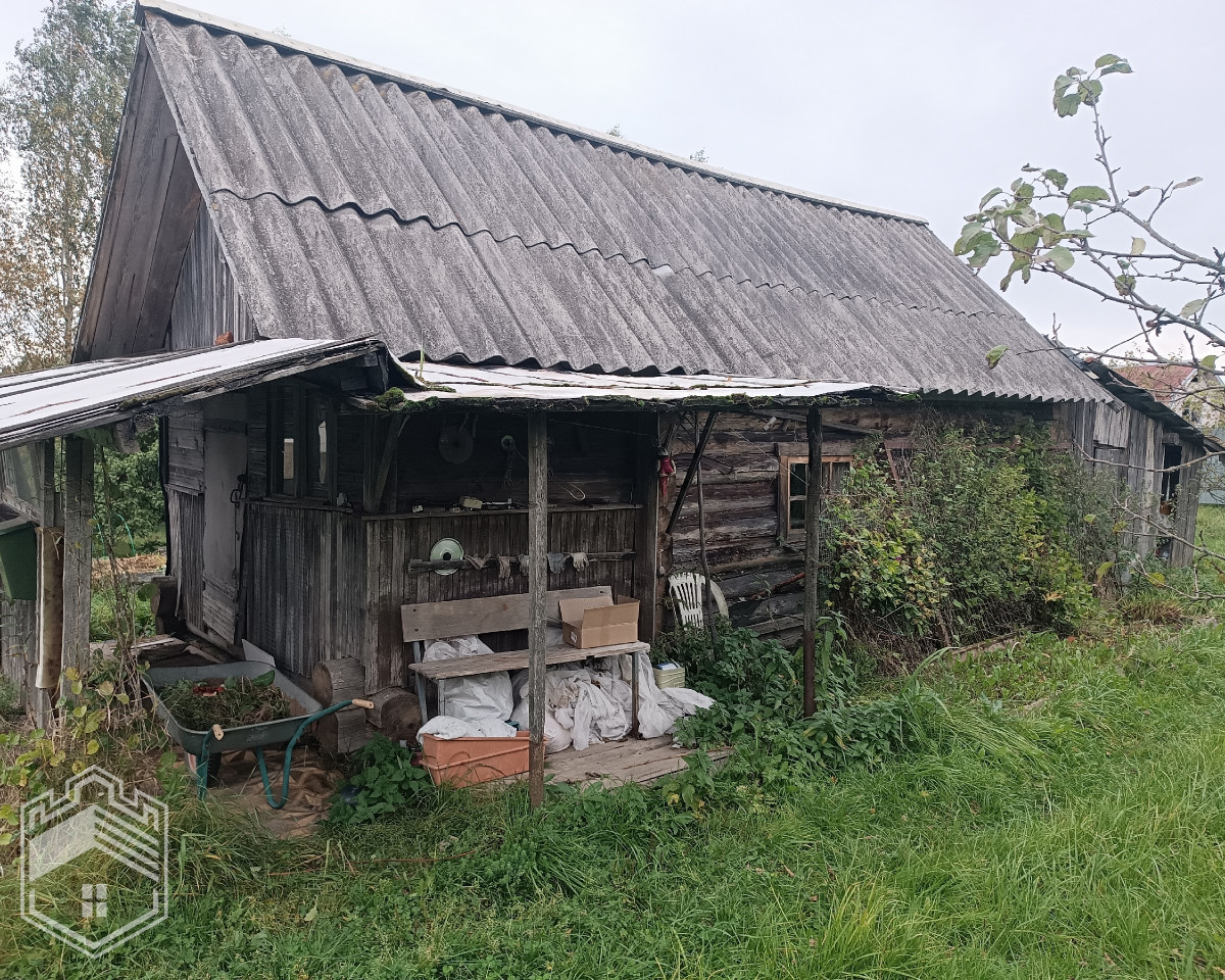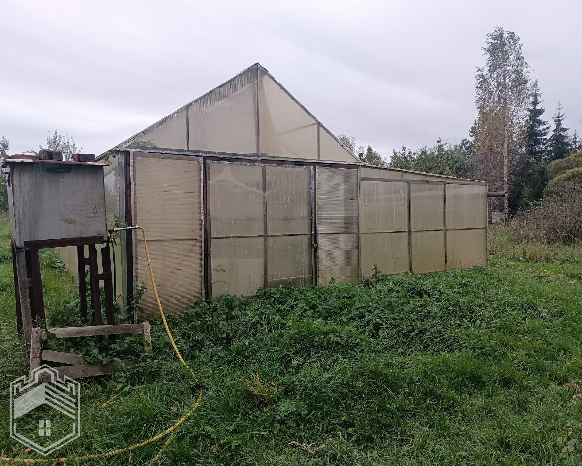 Участок — 17,7 сотки, есть 2 теплицы, бревенчатый домик можно переделать под баню, насаждения, плодовые деревья. За участком протекает ручей, соседей сзади нет. До реки Волхов 300 м.