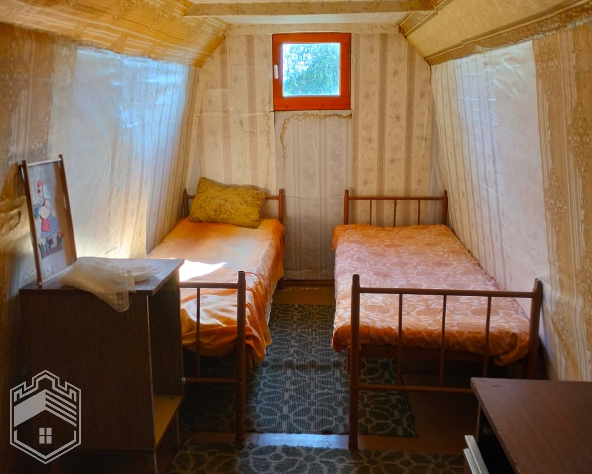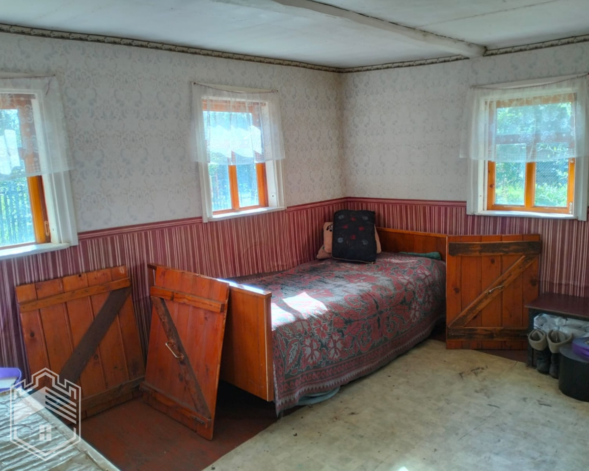 Дача — бревенчатая, 35 кв.м, имеется чердачное помещение, полы на веранде требуют ремонта, есть кессон для хранения (высота 2 м).