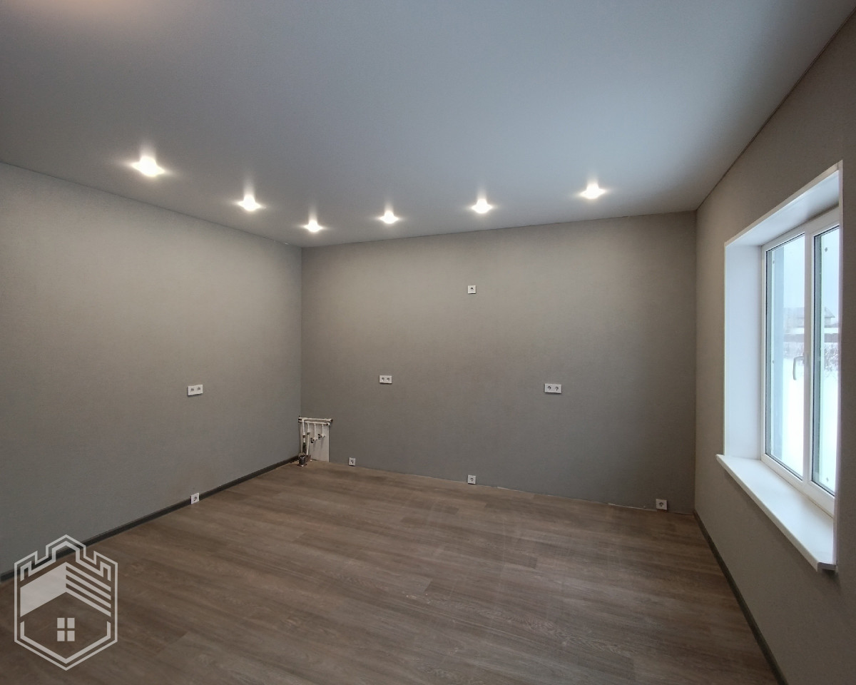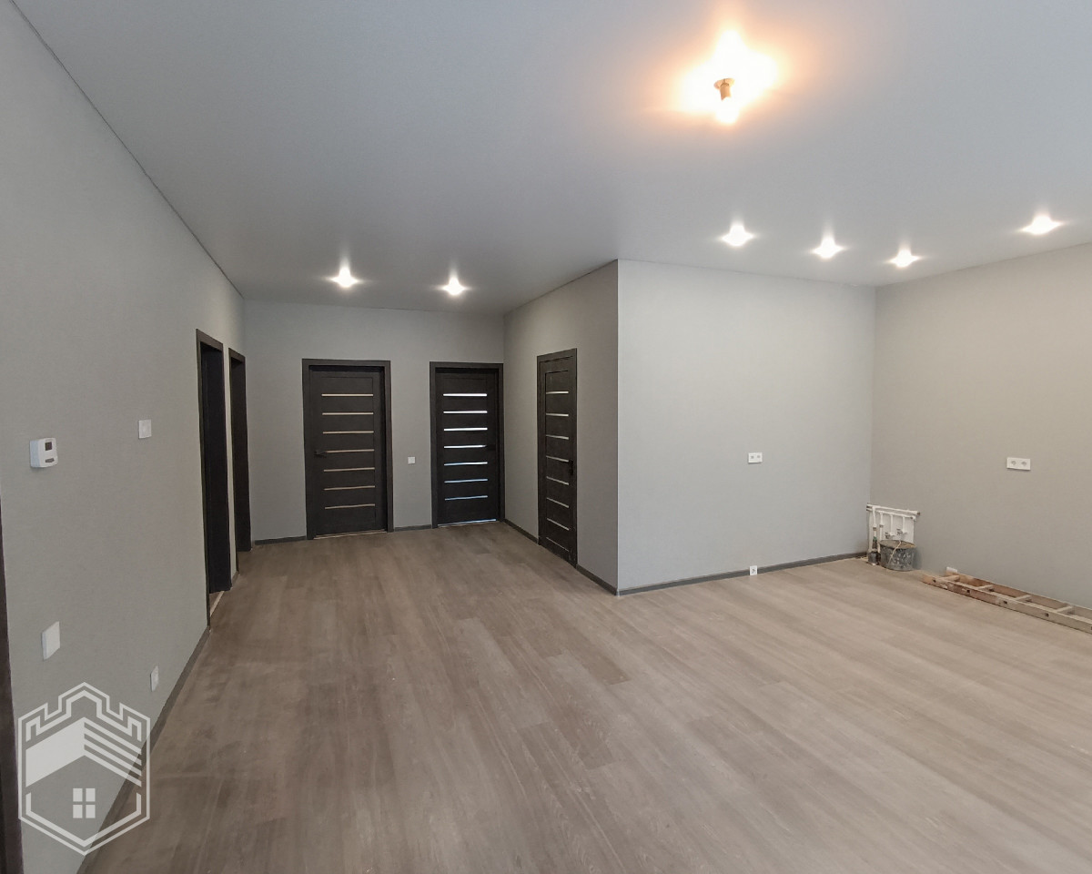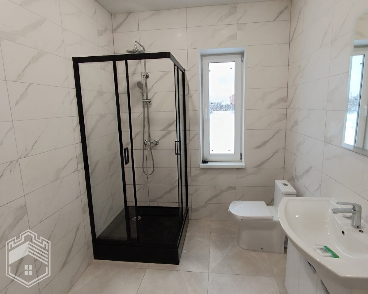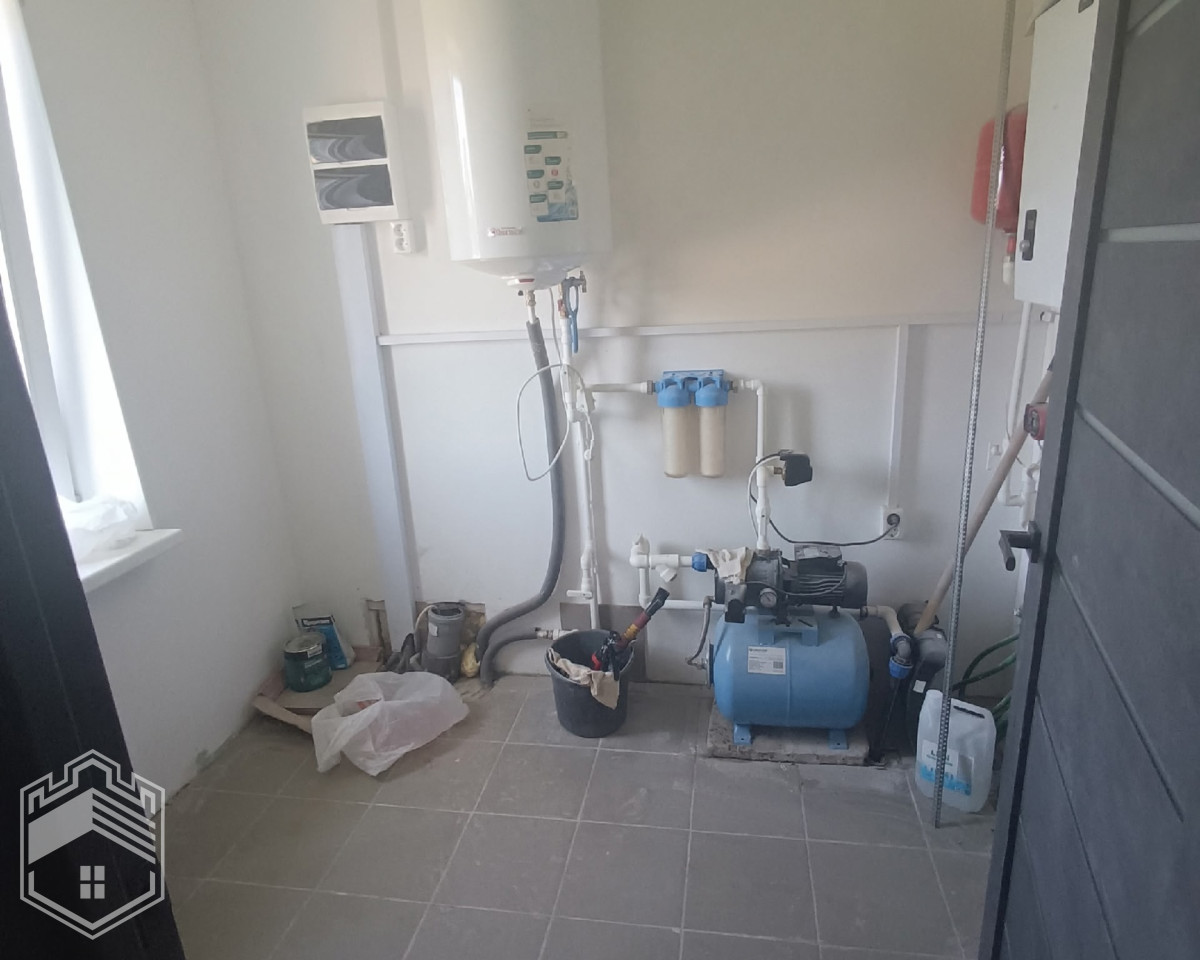 Общая площадь дома — 104 кв.м. В доме 3 спальни, отдельная гардеробная и большая светлая кухня-гостиная, прихожая, бойлерная. Санузел кафель. Продуманная удобная планировка