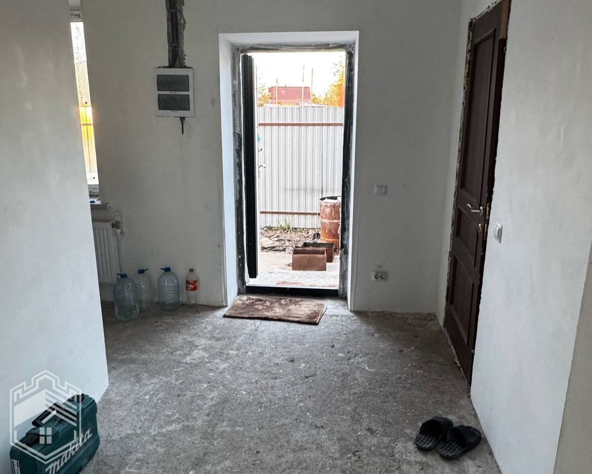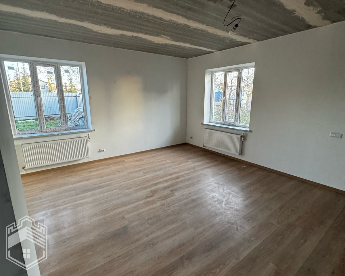 Первый этаж с отделкой: пол — ламинат, стены подготовлены к поклейке обоев, в санузле кафель, можно заезжать. Второй этаж под отделку.