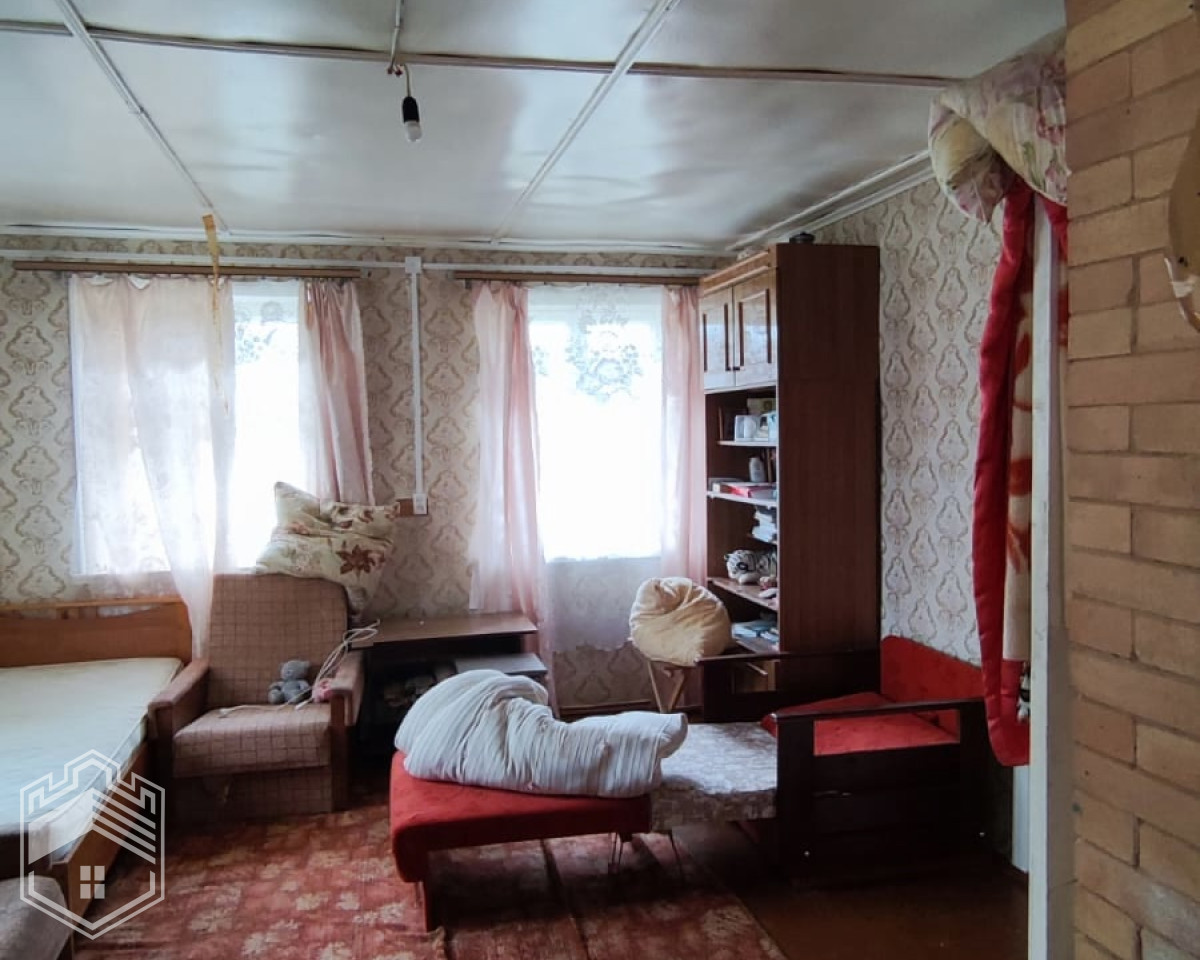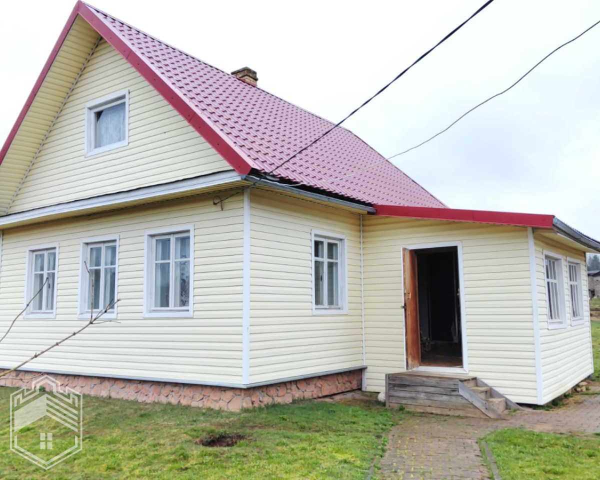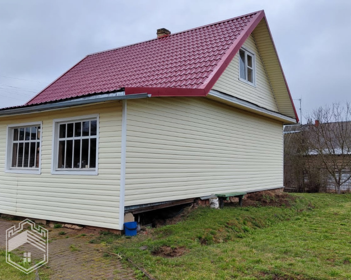 Дом — кирпичный, двухэтажный, обшит сайдингом, 7 на 8 + веранда 3 на 6. В доме 4 комнаты, печь, большой подвал, перекрытия — плиты.