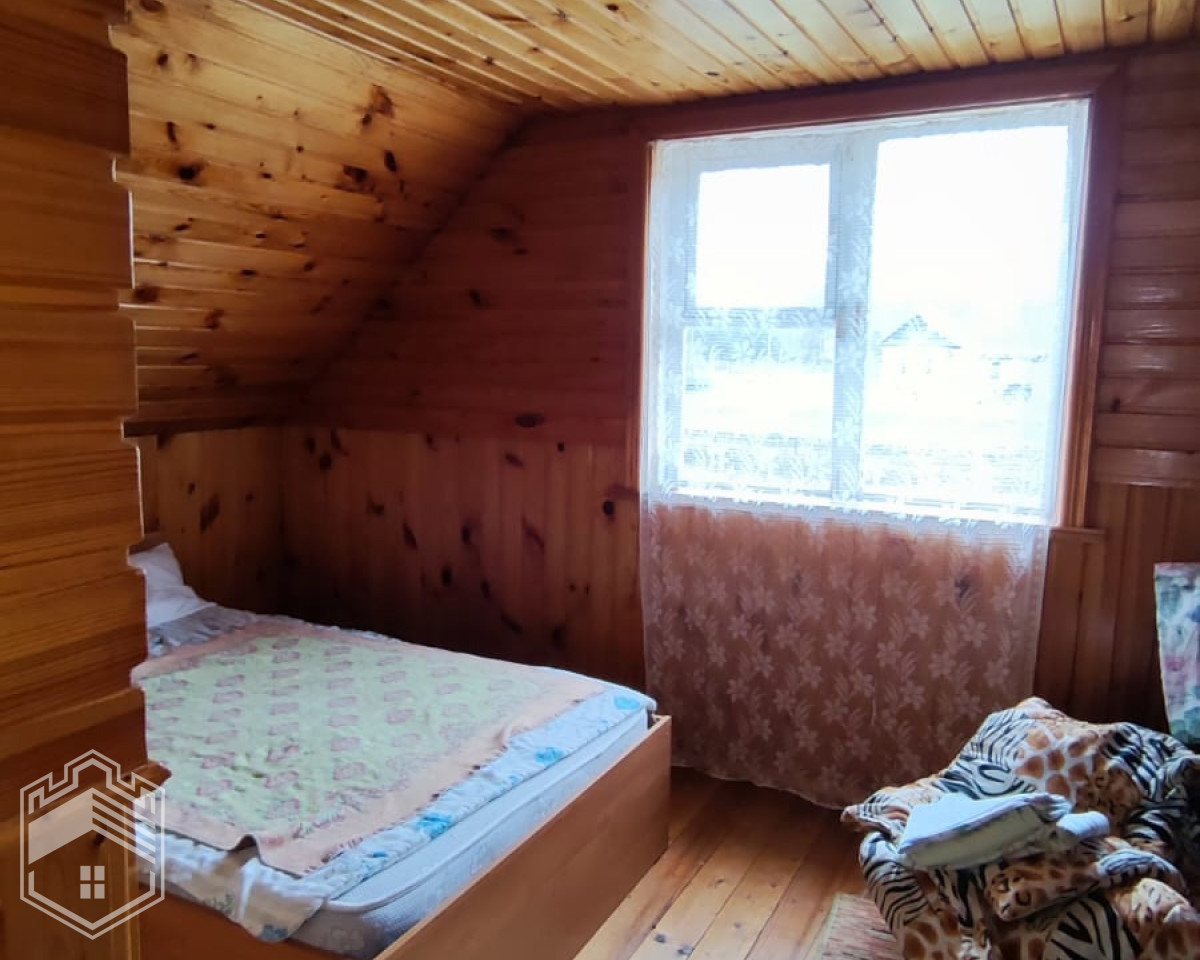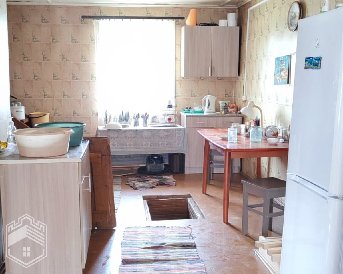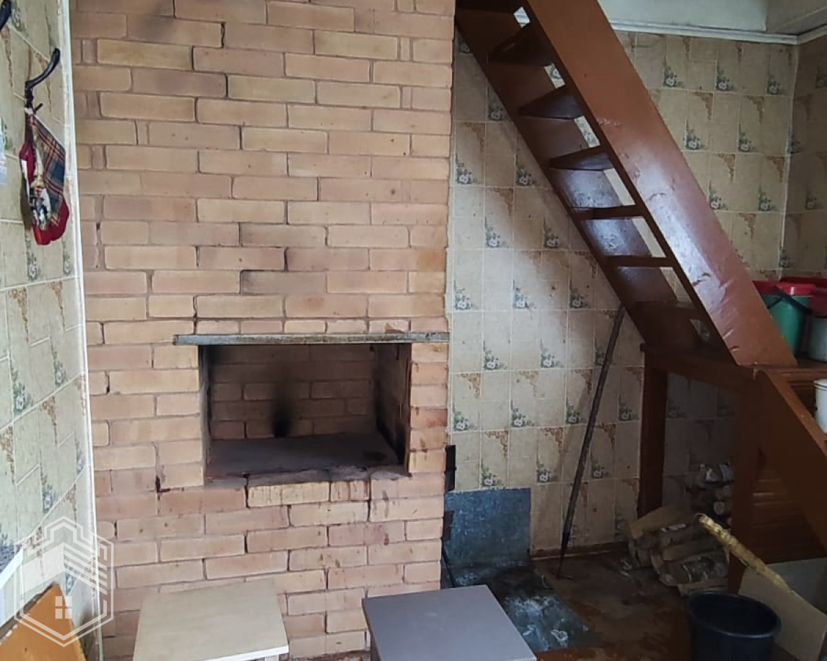 Дом — кирпичный, двухэтажный, обшит сайдингом, 7 на 8 + веранда 3 на 6. В доме 4 комнаты, печь, большой подвал, перекрытия — плиты.