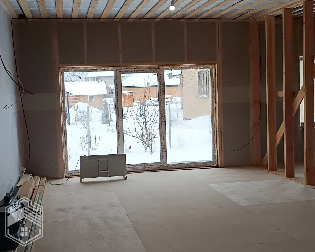 Дом — каркасный, одноэтажный, 2025 года постройки, металлочерепица 05 толщины, фундамент — жб сваи (4 м углубление), утепление базальтовой ватой (полы и потолки 200 мм, стены 150 мм), установлены двухкамерные стеклопакеты. Дом очень тёплый.