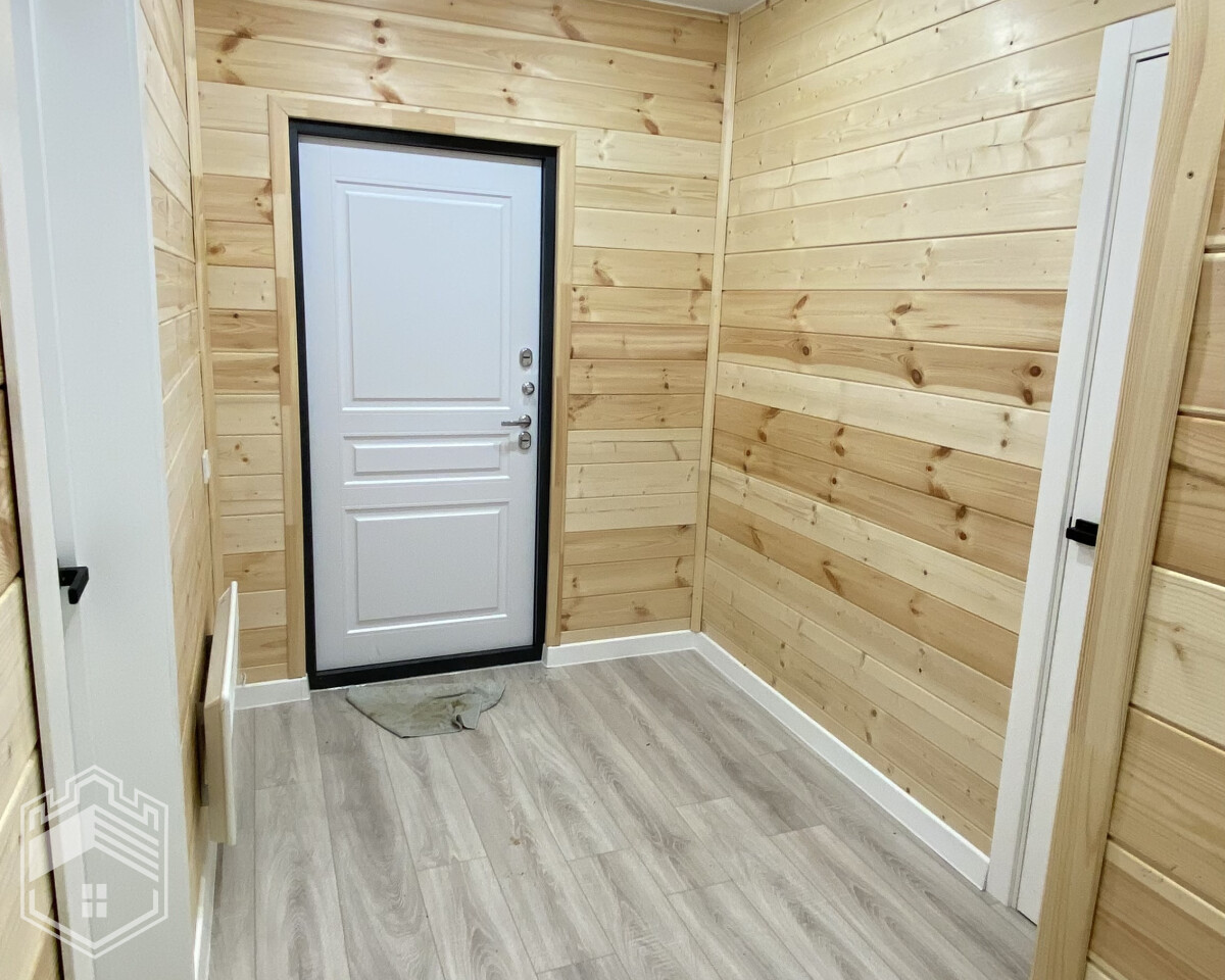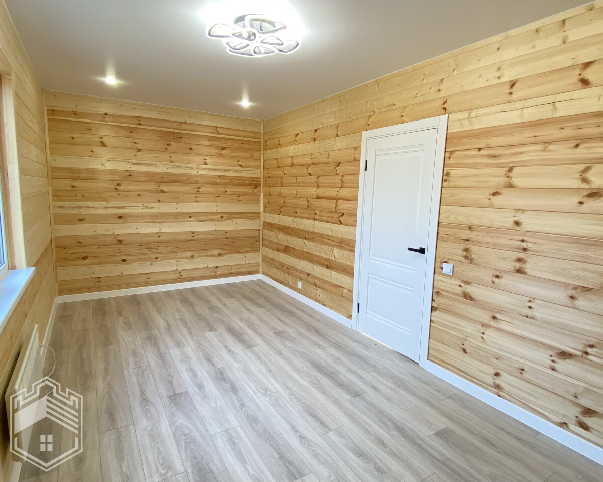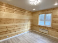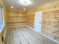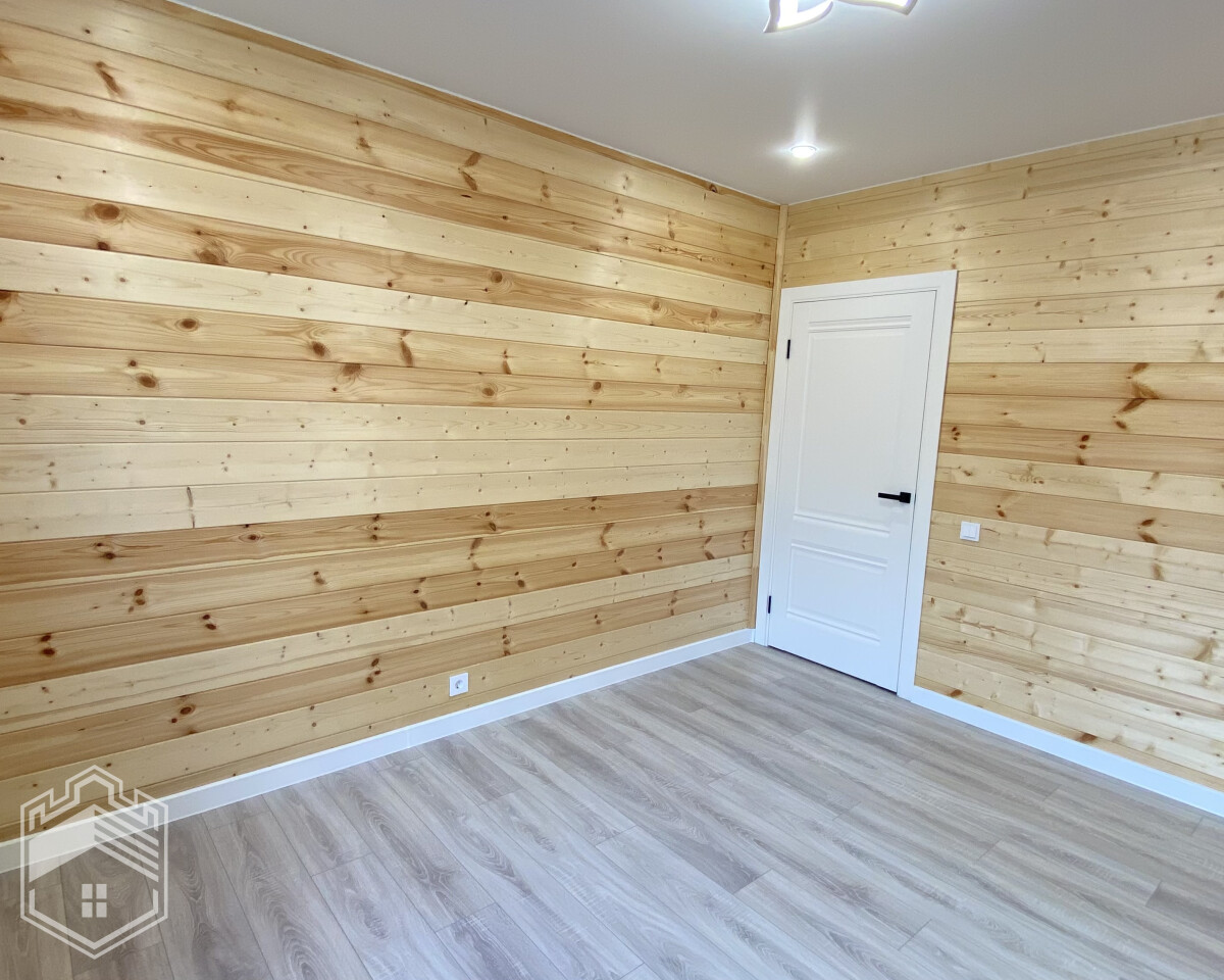 — Отделка: на пол уложен ламинат, на стенах — вагонка, натяжной потолок, межкомнатные двери Экошпон, в с/у керамогранит, установлены унитаз, ванна, раковина, зеркало и полотенцесушитель.