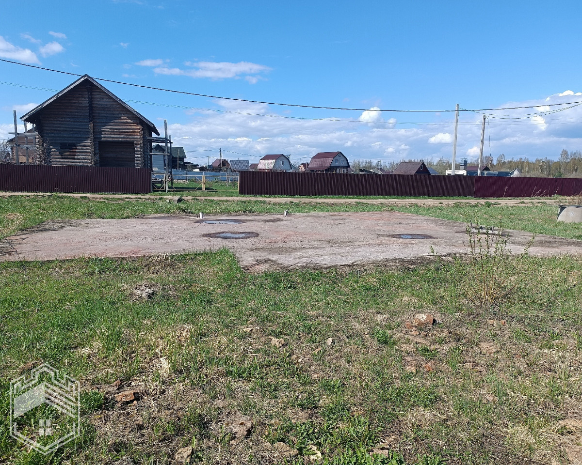 На участке находятся фундамент, плита 12 на 10 кв.м, септик, колодец. Сделан заезд от асфальта (положена труба), два заезда на участок (с асфальта и с грунтовой дороги).