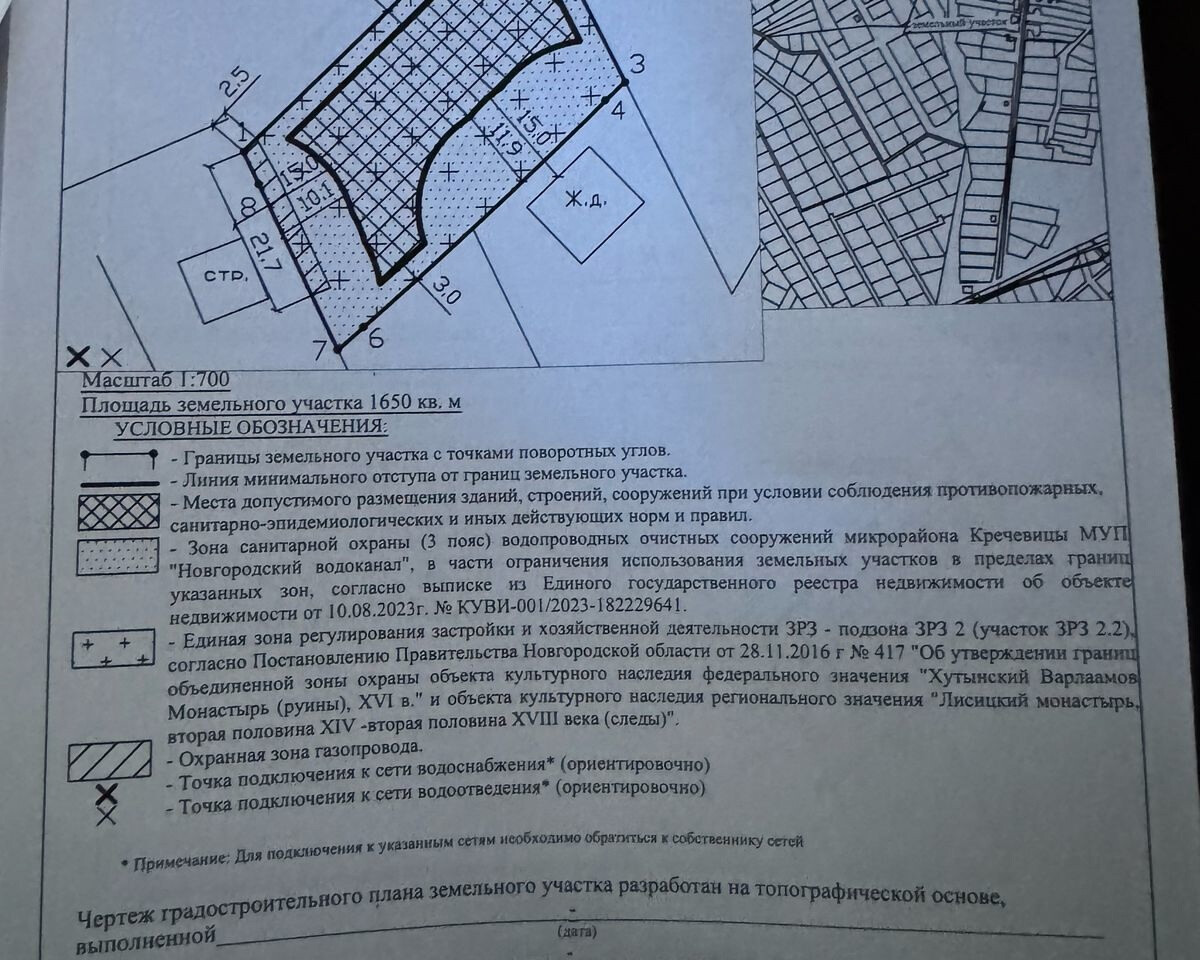 Хутынь ул. Троицкая 8 км от Великого Новгорода участок под строительство жилого дома 16,7 соток, участок высокий, сухой, электричество и газ по границе, отличная подъездная дорога, центр деревни, собственность, градостроительный план получен, межевание сделано. В шаговой доступности Хутынский монастырь, река Малый Волховец, магазин в деревни, автобусное сообщение: городской автобус 1а и пригородный